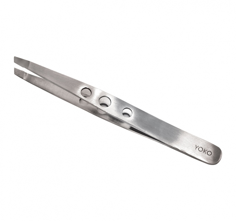 Профессиональный пинцет YOKO изготовлен из нержавеющей стали с матовым покрытием. Пинцет используется для коррекции бровей. Ручка с отверстиями и скошенным рабочим краем обеспечивает захват даже самых недоступных волосков.