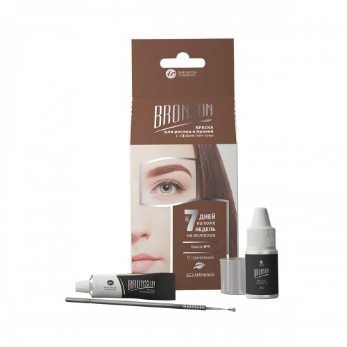 Краска для ресниц и бровей Bronsun: Water, Cellulose gum, P-phenylenediamine, Resorcinol, Sodium Sulfite, Sodium Hydroxide, +/-: Ci 16035, Ci 73015.