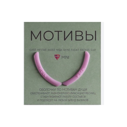 Одна пара оболочек мотивы   многоразового использования для процедуры ламинирования ресниц: мягкие подходят на любые валики, . Розовая для первого состава, прозрачная для второго состава, чёрная для красителя. Оболочки стабилизируют работу составов, удерживаю ресницы на валике на протяжении всей процедуры. Подходят под любой бренд валиков.