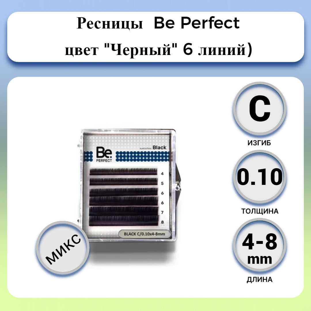 Чёрные ресницы Be Perfect Black МИКС (6 линий) (C/0.10х4-8 )