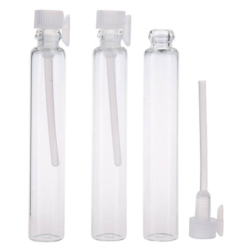 Стеклянный флакон, вмещаемым объемом на 1мл., с пластиковой крышкой аппликатором, обычно приобретают в качестве пробника косметических масел или духов.